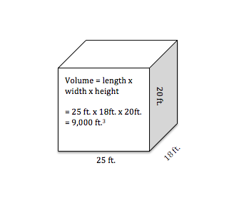 FILTR Revolution recommends one unit per 10,000 ft3 of air volume to maintain an additional 3 Air Changes per Hour (ACH). To calculate the size of your indoor spaces, simply multiple the room’s length, width, and height as seen here: